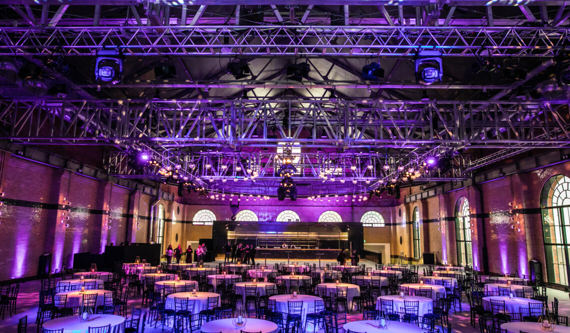 Furniture: round tables with Chiavari/Crossback chairs; charger plates for polish; sideboards for service kit.
