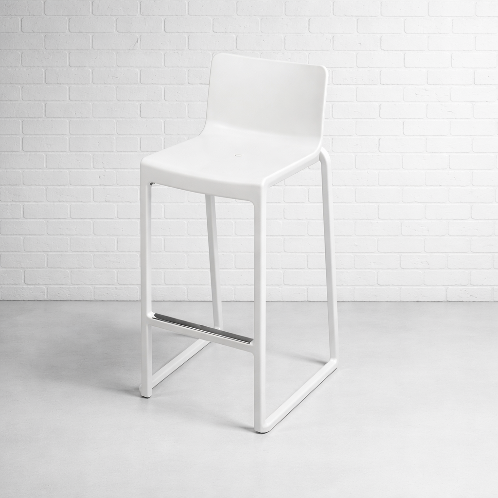 White Mono Chair & Stool – Lightweight, modern and perfect for conferences, dining layouts or contemporary pop-ups.