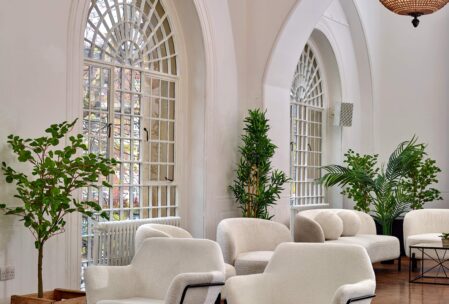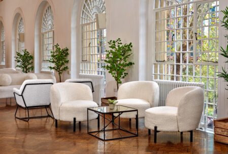 With its grand arched windows, wooden floors, and crystal chandeliers, One Marylebone is one of London’s most photogenic event spaces, and our furniture feels right at home here. The bouclé range softens the formality of the building, transforming the space into a serene, contemporary lounge without losing its historic charm.