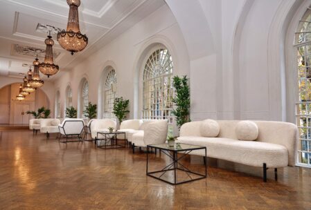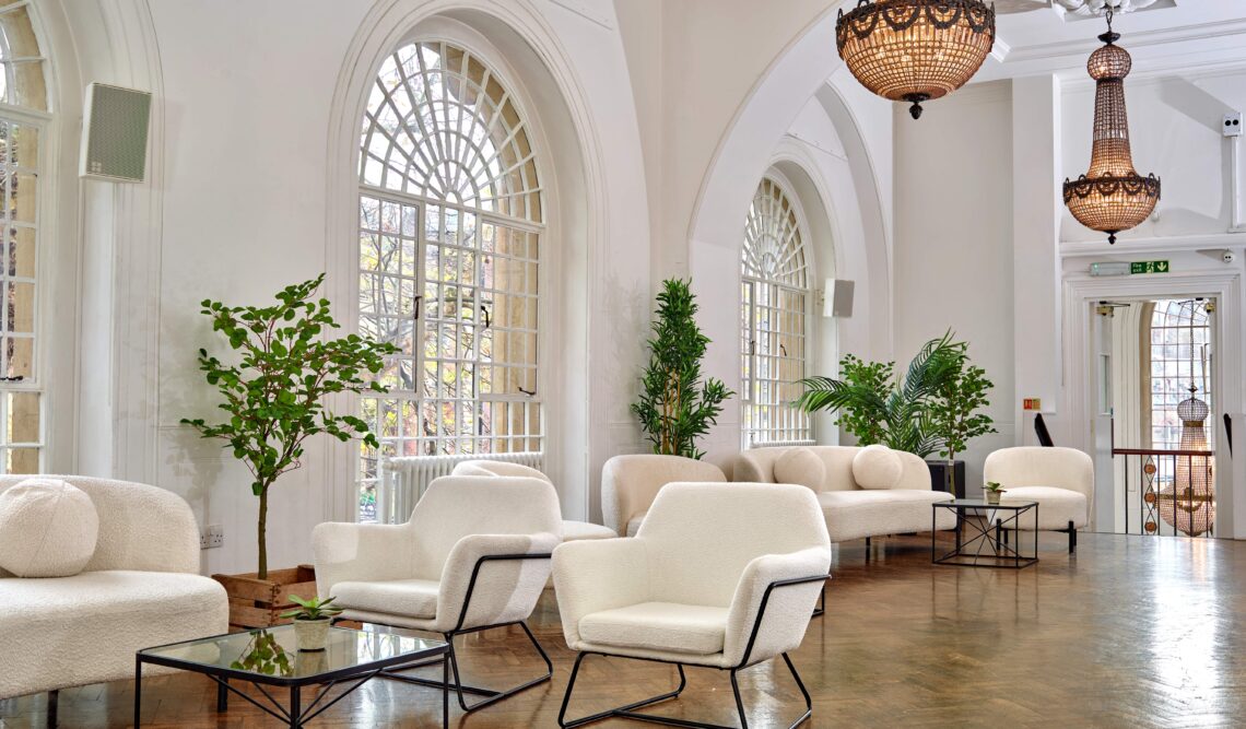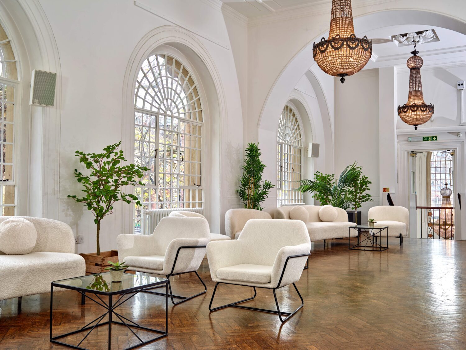 With its grand arched windows, wooden floors, and crystal chandeliers, One Marylebone is one of London’s most photogenic event spaces, and our furniture feels right at home here. The bouclé range softens the formality of the building, transforming the space into a serene, contemporary lounge without losing its historic charm.